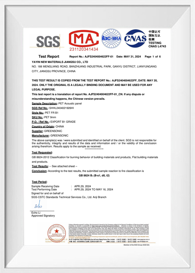 Akustiske paneler av polyesterfiber